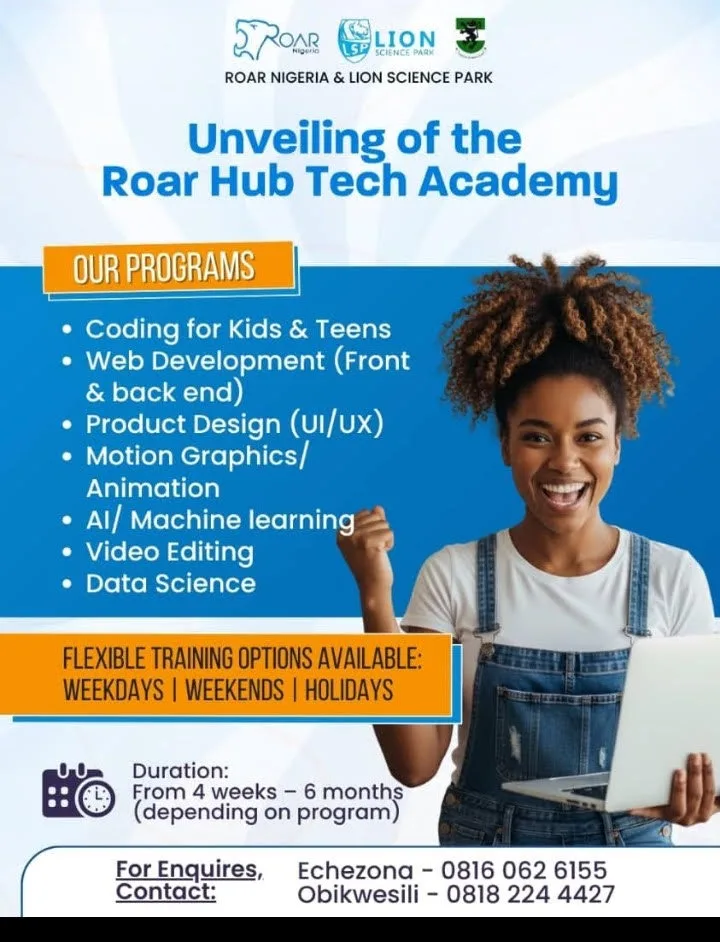 The Management of Roar Nigeria Hub, in partnership with the Lion Science Park, is pleased to announce the Unveiling of the Roar Nigeria Tech Academy.